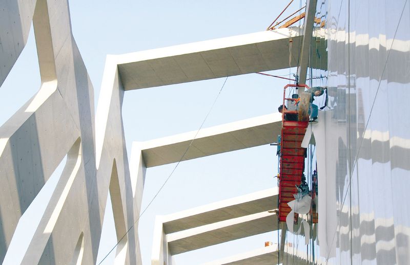 日前,施工人員在加緊安裝龍湖體育館外墻的幻彩鋁塑板。龍湖體育館的外觀造型采用透空大型群雕主題墻,既抽象又具體,既內(nèi)斂又張揚(yáng),通過構(gòu)件所產(chǎn)生的陰影投映在外墻面上,形成一個光影變化豐富的三維空間,動感十足,給人以無限遐想。體育館建成后將成為我市標(biāo)志性建筑,提升了城市品位