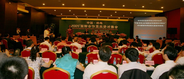 2009年6月29日,“中國(guó)·蚌埠2009’國(guó)際合作暨投資對(duì)接會(huì)”在北京隆重舉行。會(huì)議的主要目的是使世界了解安徽蚌埠,促進(jìn)安徽蚌埠在更寬領(lǐng)域、更高層次上尋求國(guó)際合作,實(shí)現(xiàn)共同發(fā)展。