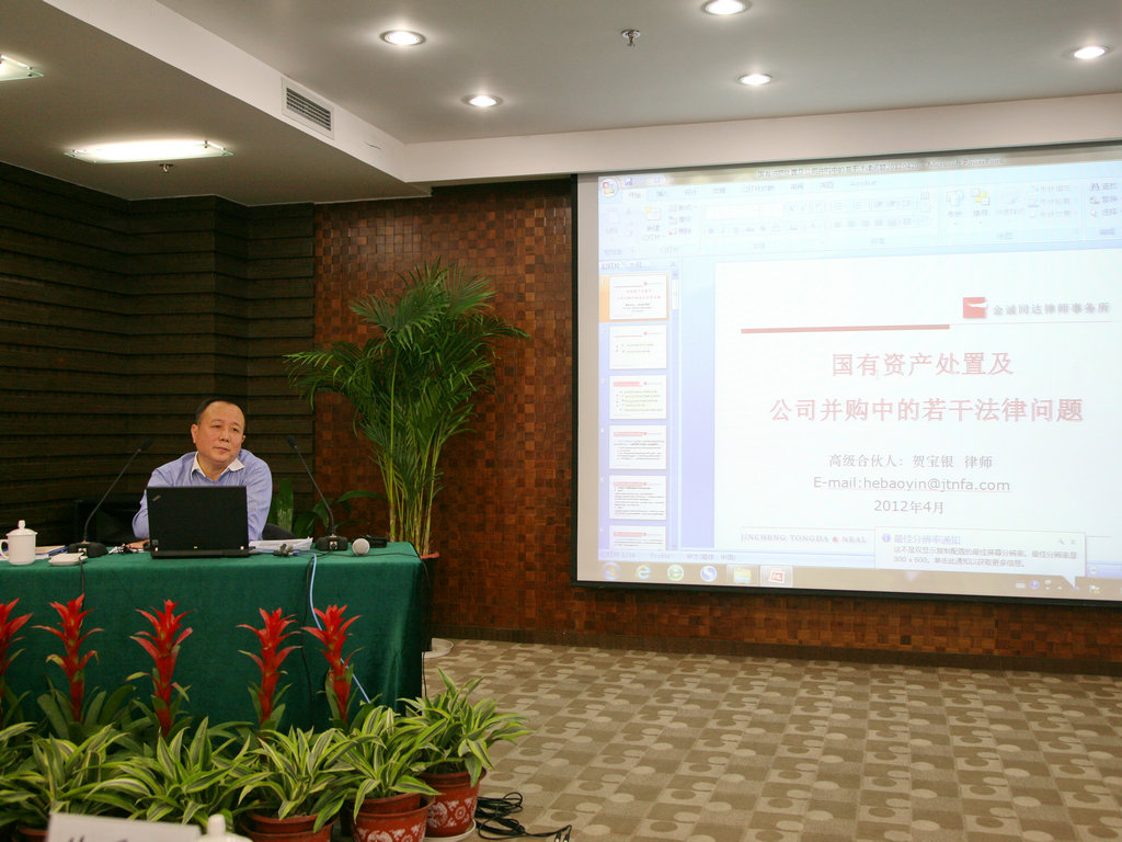 此次培訓(xùn)由中國國際經(jīng)濟(jì)貿(mào)易仲裁委員會仲裁員、北京市律師協(xié)會公司法專業(yè)委員會主任賀寶銀主講,賀主任在企業(yè)改制、上市、并購、重組、投資基金以及國際經(jīng)濟(jì)貿(mào)易仲裁等領(lǐng)域有著深厚的理論基礎(chǔ)和豐富的實踐經(jīng)驗。賀寶銀主任從國有資產(chǎn)處置、公司并購兩方面的若干法律問題,結(jié)合大量案例,詳盡的分析了國有資產(chǎn)處置的程序、公司并購及流程。賀主任講課內(nèi)容豐富、指導(dǎo)性強(qiáng),對于公司進(jìn)一步強(qiáng)化資產(chǎn)管理具有指導(dǎo)意義和借鑒作用。課間參會人員與賀主任進(jìn)行了良好的互動。