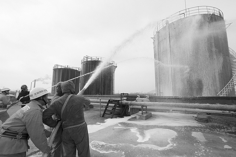 800立方米丙烯腈儲(chǔ)罐突發(fā)“泄漏”,一旦發(fā)生環(huán)境污染事故,將波及周邊大片生活區(qū),情況十分危急……昨天上午9時(shí)許,市環(huán)保局主辦的環(huán)境突發(fā)事件應(yīng)急演練在安徽天潤(rùn)化學(xué)工業(yè)股份有限公司儲(chǔ)罐區(qū)舉行?!翱?!有人中毒倒地,罐體隨時(shí)有起火可能,請(qǐng)搶險(xiǎn)救援小組、醫(yī)療救護(hù)小組、消防滅火小組支援!”伴隨著急促而有序的通話,企業(yè)負(fù)責(zé)人命令立即啟動(dòng)專項(xiàng)環(huán)境應(yīng)急預(yù)案?!笆鹿省爆F(xiàn)場(chǎng),兩名穿戴防護(hù)服、身背呼吸機(jī)的救援隊(duì)員沖鋒在前,成功關(guān)閉了發(fā)生泄漏的3號(hào)罐的外排閥門(mén),并對(duì)損壞罐體進(jìn)行搶修,防止更多化學(xué)氣體外泄;現(xiàn)場(chǎng)醫(yī)療人員抬起擔(dān)架沖進(jìn)儲(chǔ)罐區(qū),抬送“傷員”到安全地帶,組織員工向上風(fēng)口有序撤離轉(zhuǎn)移;全副武裝的消防隊(duì)員手持水槍,噴涌而出的泡沫將3號(hào)罐體團(tuán)團(tuán)包裹,罐內(nèi)化學(xué)物質(zhì)得到降溫、稀釋。