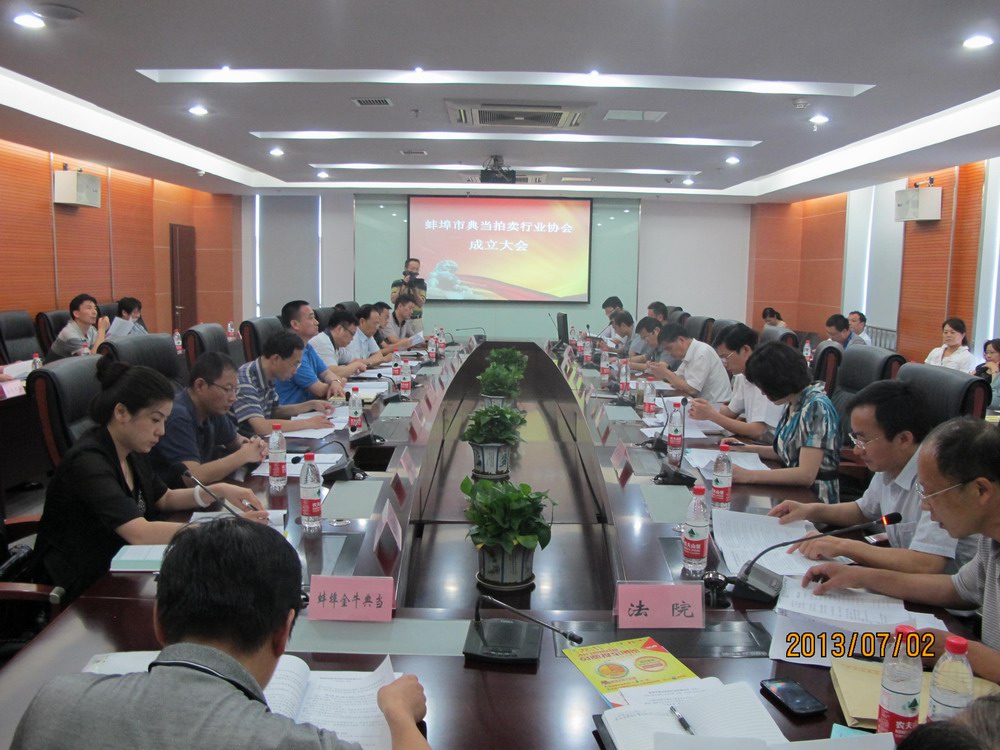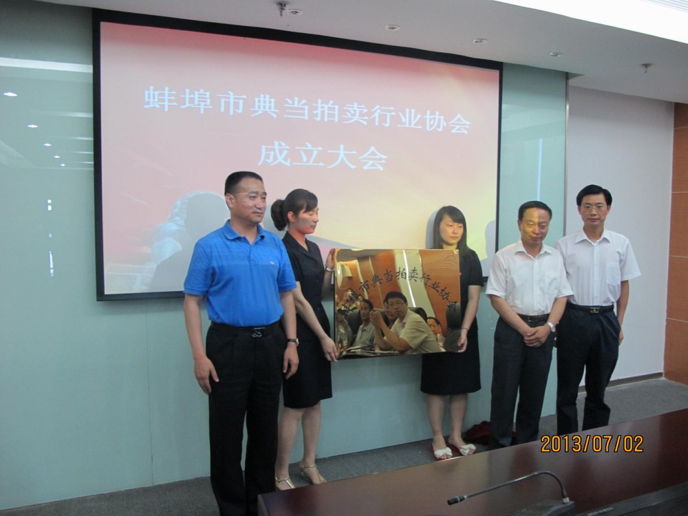 7月2日下午,蚌埠市典當(dāng)拍賣行業(yè)協(xié)會(huì)成立暨第一屆第一次會(huì)員大會(huì)成功舉行。市政協(xié)、商務(wù)局領(lǐng)導(dǎo)參加了會(huì)議。協(xié)會(huì)選舉興達(dá)典當(dāng)有限公司董事長張建國為會(huì)長。會(huì)上,市政協(xié)、商務(wù)局領(lǐng)導(dǎo)與各典當(dāng)公司、拍賣公司代表相互交換意見、深入探討,就協(xié)會(huì)今后的運(yùn)作發(fā)展進(jìn)行了規(guī)劃。