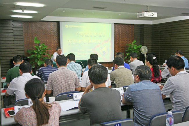 培訓(xùn)中,沈世偉從當(dāng)前的環(huán)境熱點(diǎn)事件入題,介紹了新環(huán)保法出臺(tái)的背景,詳細(xì)解讀了新環(huán)保法的四大亮點(diǎn)和關(guān)鍵條款,重點(diǎn)闡釋了新《環(huán)保法》與1989年頒布實(shí)施的《環(huán)保法》在創(chuàng)新環(huán)境理念、創(chuàng)新多元共治、強(qiáng)化政府責(zé)任、明確企業(yè)義務(wù)、增加環(huán)保授權(quán)、加強(qiáng)信息公開(kāi)、嚴(yán)懲違法企業(yè)等方面的變化。他結(jié)合案例全面透徹地詮釋了新環(huán)境保護(hù)法法規(guī)條款,讓大家對(duì)新《環(huán)保法》及配套辦法有了全面的認(rèn)識(shí)和了解,同時(shí)也增強(qiáng)了大家的環(huán)保觀念和意識(shí)。