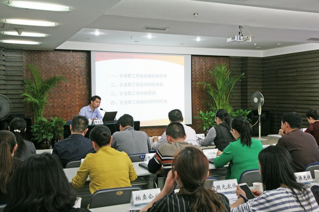 廖老師根據(jù)自身多年從事人事檔案工作的經(jīng)驗與思考,結合客觀的理論和實際案例,闡述了企業(yè)職工檔案管理的意義、作用及特點,詳細介紹了職工檔案材料歸檔收集范圍的十九項內容,以及檔案分類、排序、編目、技術加工、裝訂和驗收入庫等具體操作步驟和要求。培訓結束,大家針對自己工作中遇到的具體問題進行了提問和討論。