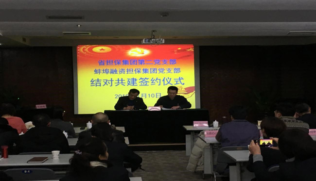 會(huì)上,蚌埠擔(dān)保集團(tuán)黨支部與省市擔(dān)保雙方進(jìn)行支部結(jié)對(duì)共建簽約。