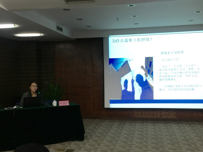 合肥國(guó)控?fù)?dān)保總經(jīng)理助理、商業(yè)擔(dān)保部經(jīng)理張曉敏對(duì)工程履約擔(dān)保業(yè)務(wù)進(jìn)行了全面解析,并重點(diǎn)介紹了履約擔(dān)保、投標(biāo)擔(dān)保、預(yù)付款擔(dān)保、質(zhì)量保證擔(dān)保等業(yè)務(wù)產(chǎn)品以及風(fēng)險(xiǎn)管理和業(yè)務(wù)創(chuàng)新等方面業(yè)務(wù)知識(shí)。