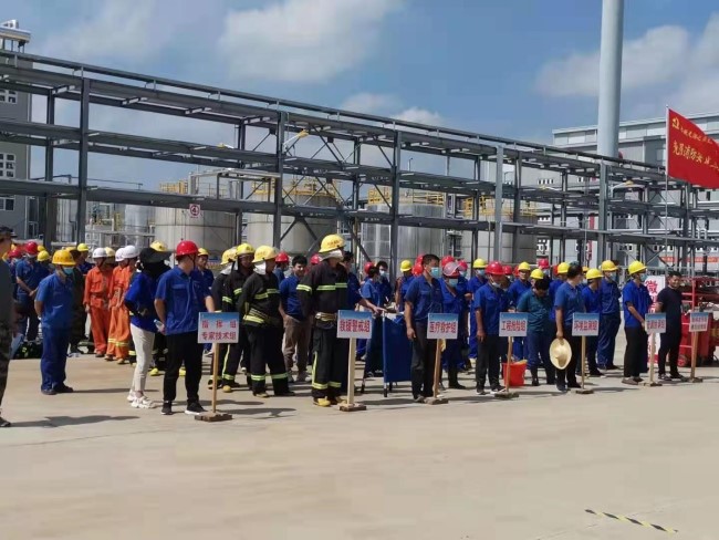 為檢驗(yàn)《天潤(rùn)化工生產(chǎn)安全事故綜合應(yīng)急預(yù)案》在新廠區(qū)的可行性,7月22日上午,天潤(rùn)公司在新廠區(qū)重大危險(xiǎn)源1#丙烯腈罐區(qū)進(jìn)行了綜合應(yīng)急演練。公司黨委書(shū)記、總經(jīng)理劉彭城任現(xiàn)場(chǎng)演練總指揮,黨委經(jīng)營(yíng)班子成員、中層管理人員、安全管理人員及相關(guān)部門應(yīng)急救援組成員等70余人參與演練。