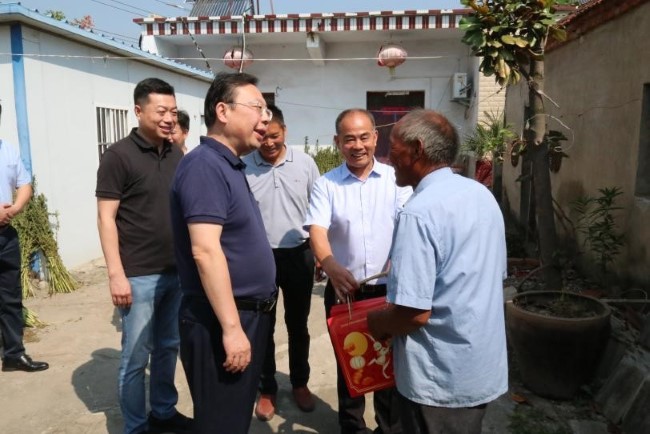 9月19日上午,蚌投集團(tuán)黨委副書記、總經(jīng)理陳建功,黨委委員、副總經(jīng)理陶志剛帶隊赴鄉(xiāng)村振興幫扶村淮上區(qū)周郢村,開展鄉(xiāng)村振興調(diào)研暨中秋佳節(jié)走訪慰問活動,集團(tuán)辦公室、市農(nóng)業(yè)科技投資公司相關(guān)負(fù)責(zé)同志陪同參加。