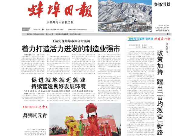 2月17日晚,2021年度蚌埠市經(jīng)濟人物(團(tuán)隊)頒獎典禮舉行,本次評選活動以“創(chuàng)新之城、材料之都、制造高地、幸福蚌埠...
