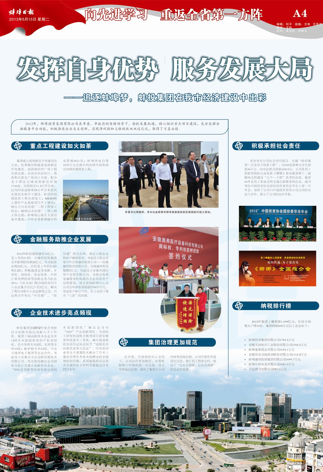 蚌投集團(tuán)在我市經(jīng)濟(jì)建設(shè)中出彩—蚌埠日報(bào)先進(jìn)專版